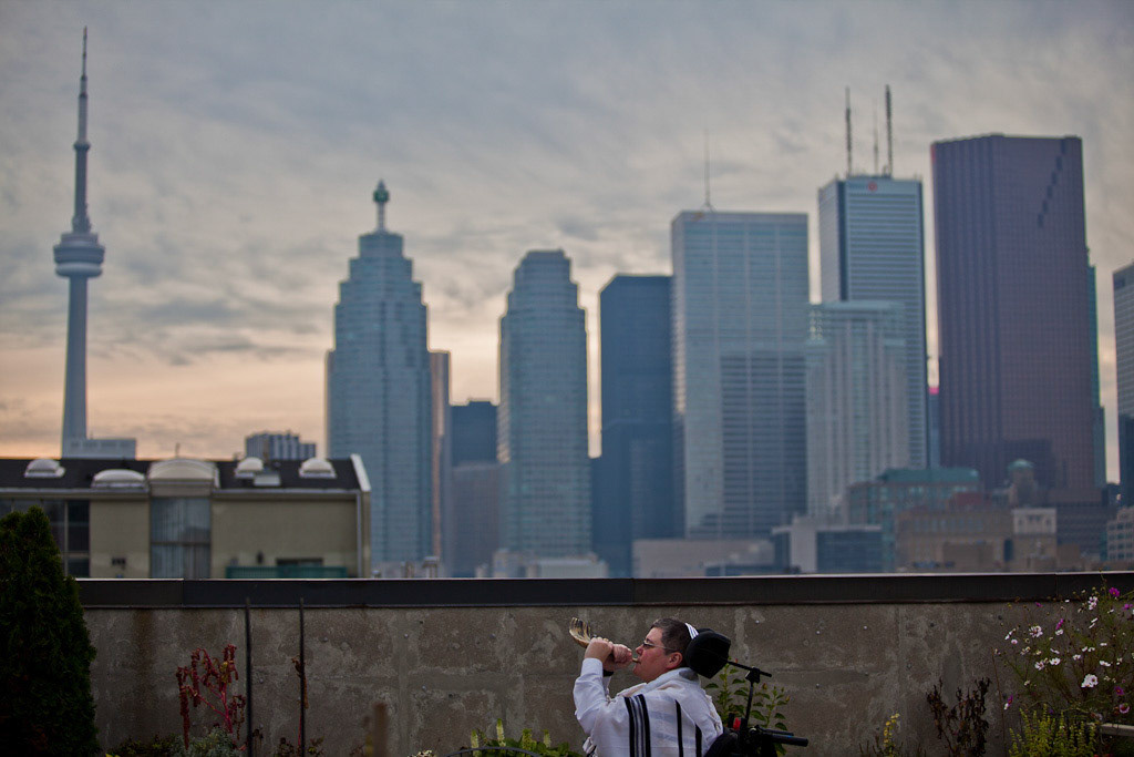 TORONTO -- A man walks through a shaft of light in Toronto's financial core on February 9, 2017.