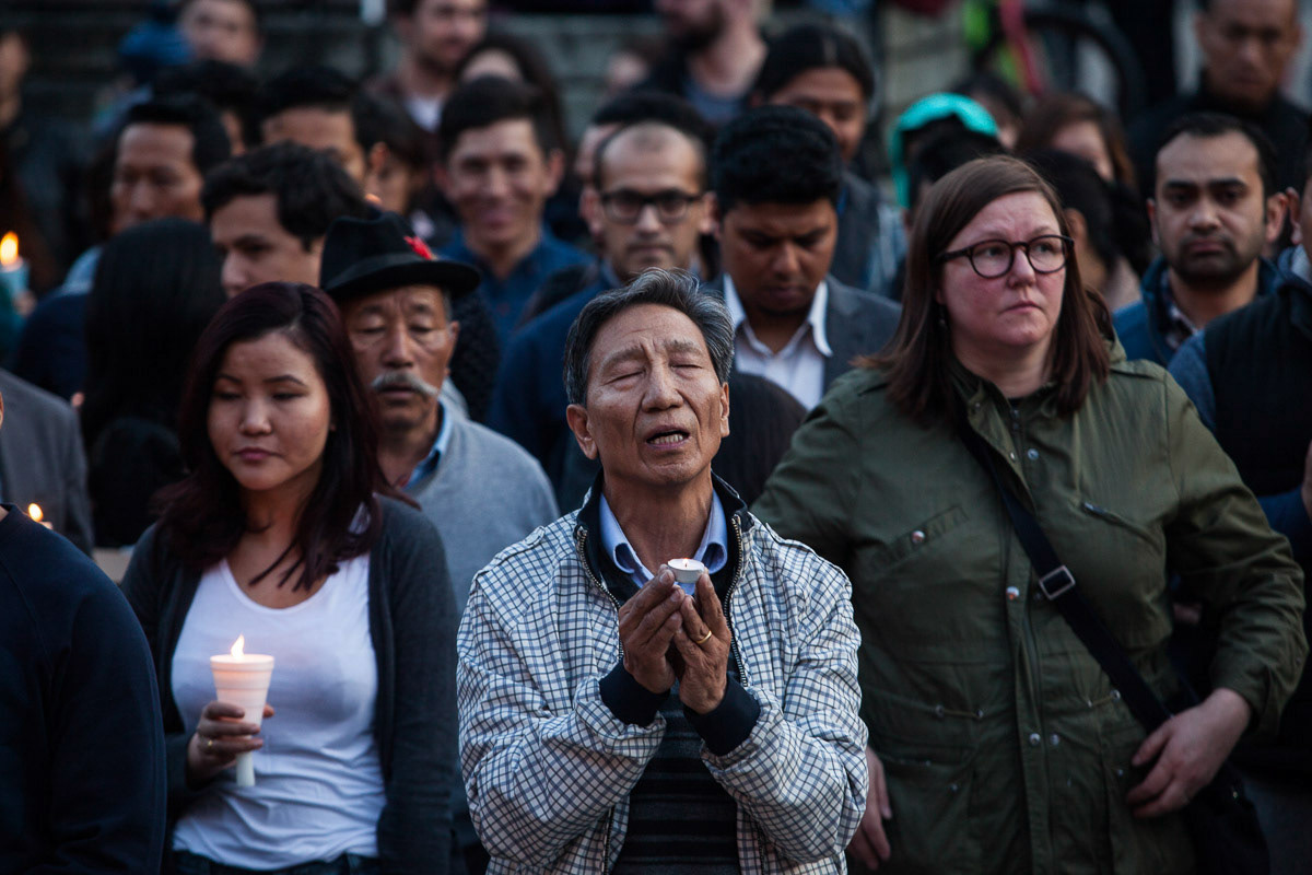 TORONTO, Ont. : (29 July 2013) - Sahar Bahari cries as she sits in front of the spot where her son was shot and killed by police on Friday July 26, 2013. Yatin was killed on a streetcar on Dundas West while allegedly holding a knife. Photo by Giordano Ciampini
